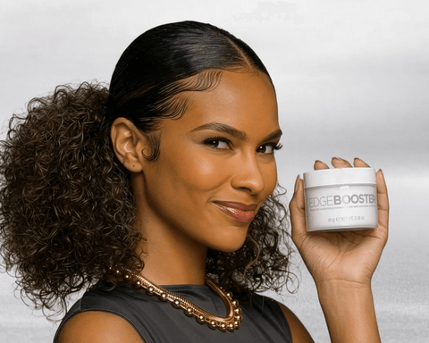 EDGE BOOSTER Moisturizing Pomade provides a luxurious, long-lasting shine while deeply moisturizing your hair. Simply apply a small amount to your hands, work it through your hair, and sculpt your desired style for a strong hold and a polished finish that lasts all day.